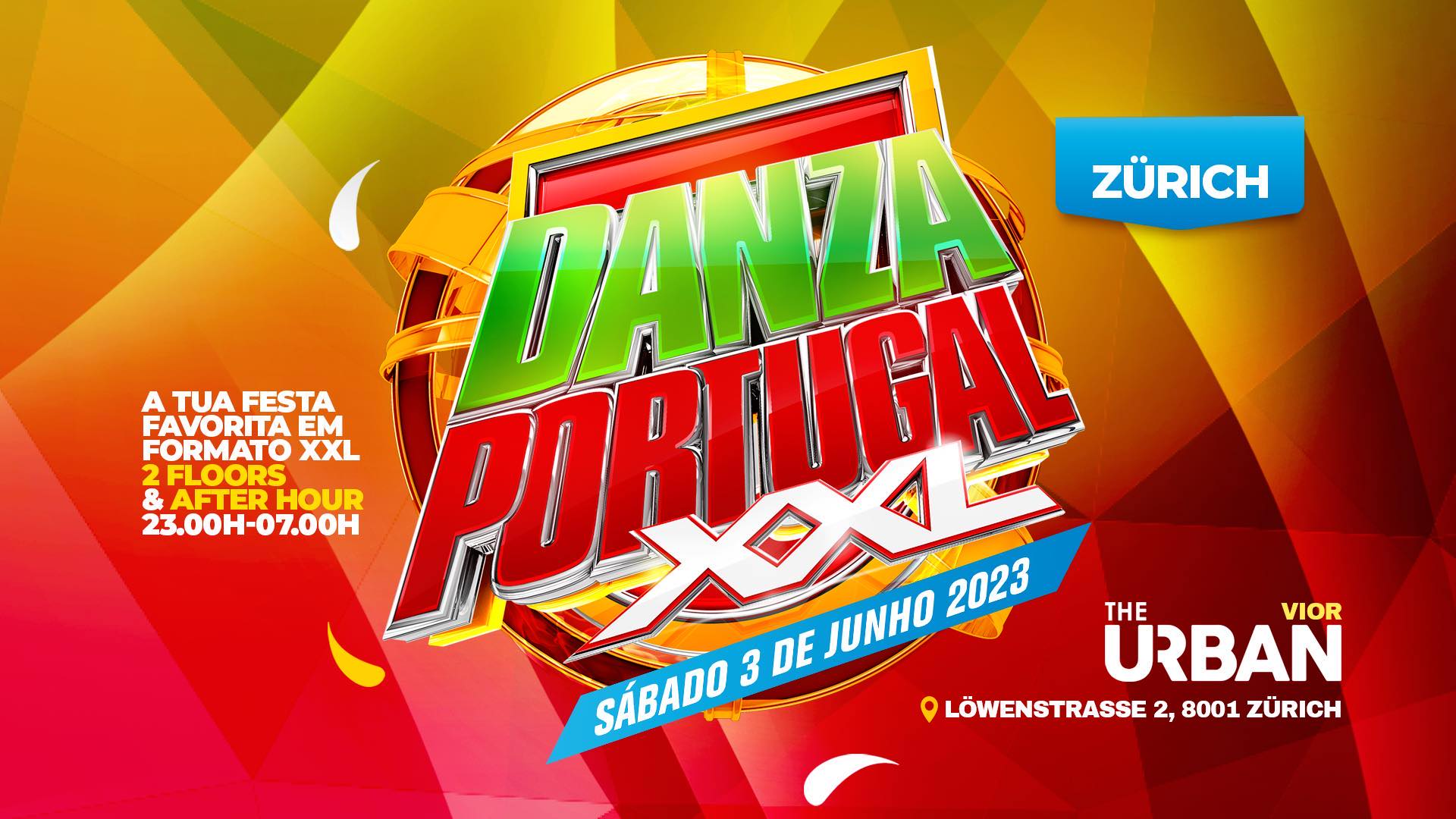 Não perca a festa “Danza Portugal XXL” em Zurique, sábado dia 3 de Junho de 2023 com duas pistas de dança e after hours das 23h às 7h. Para mais informações ligue para o 079 941 90 89 ou envie um e-mail para info@danzaportugal.com
